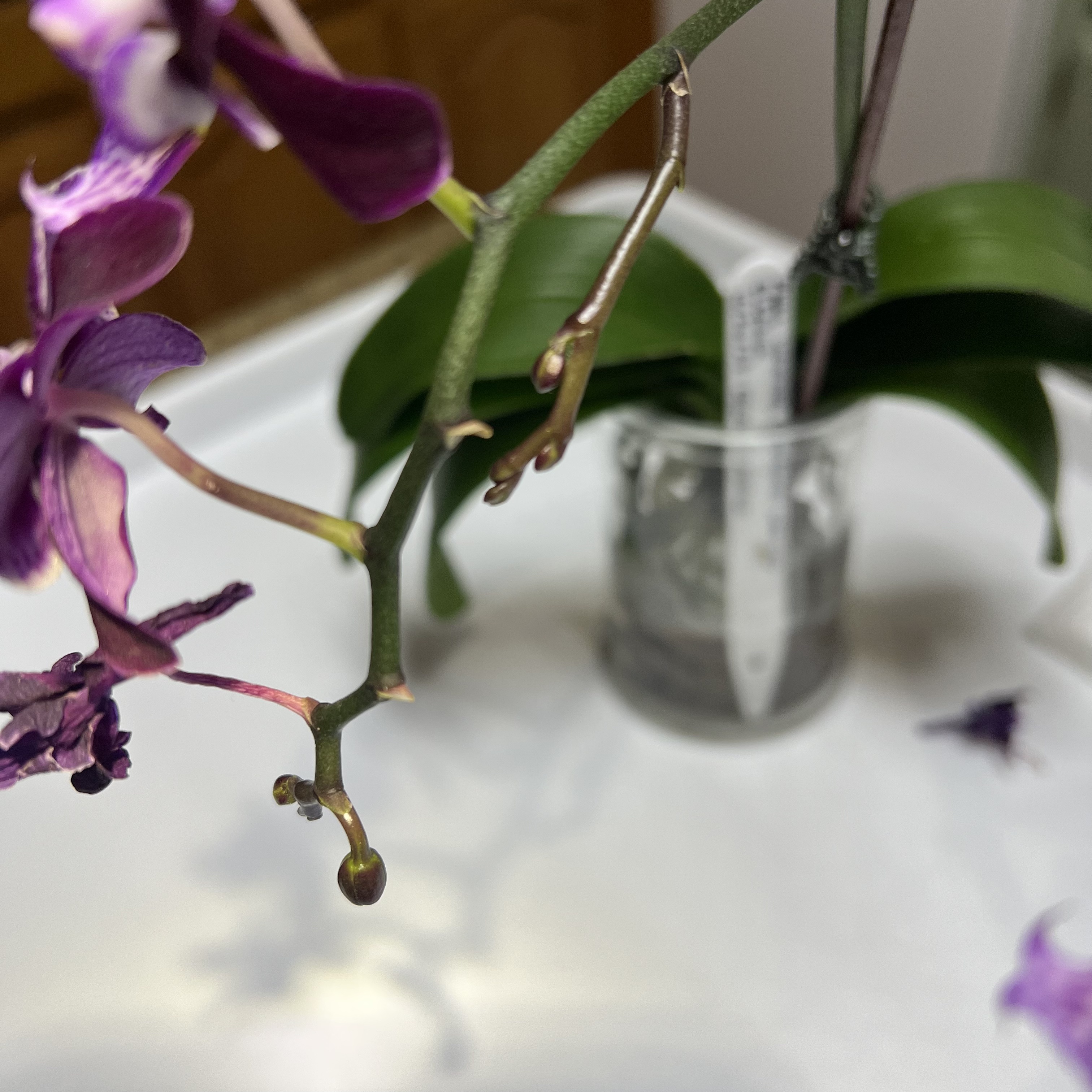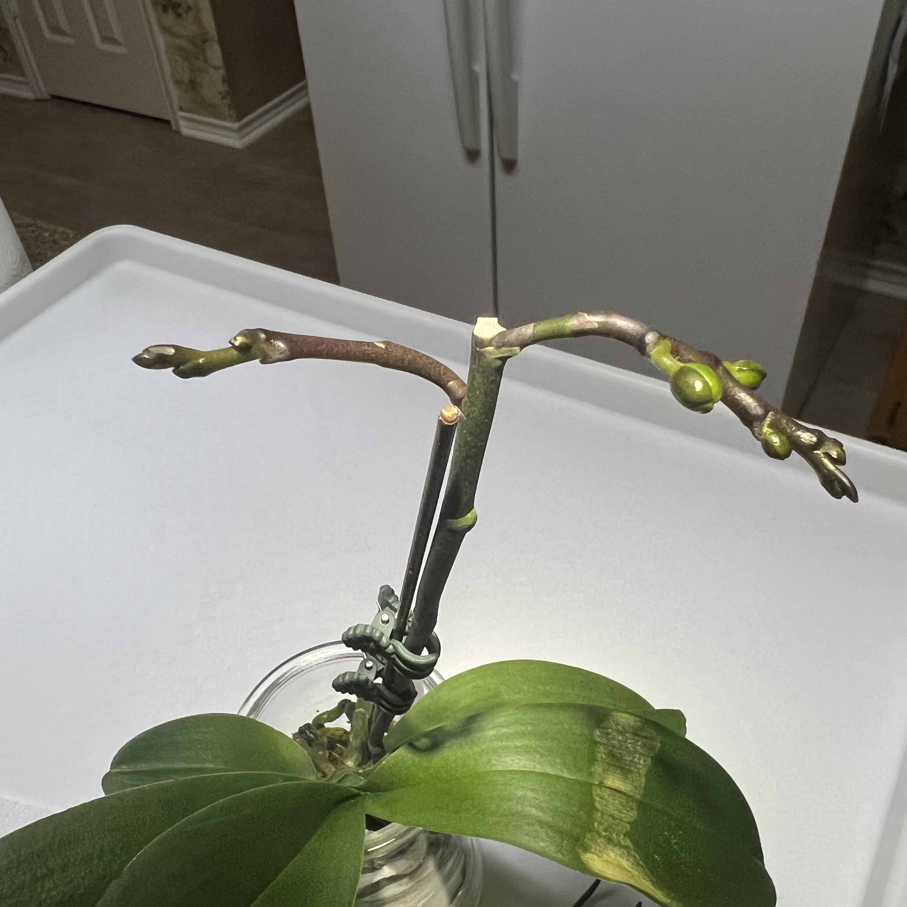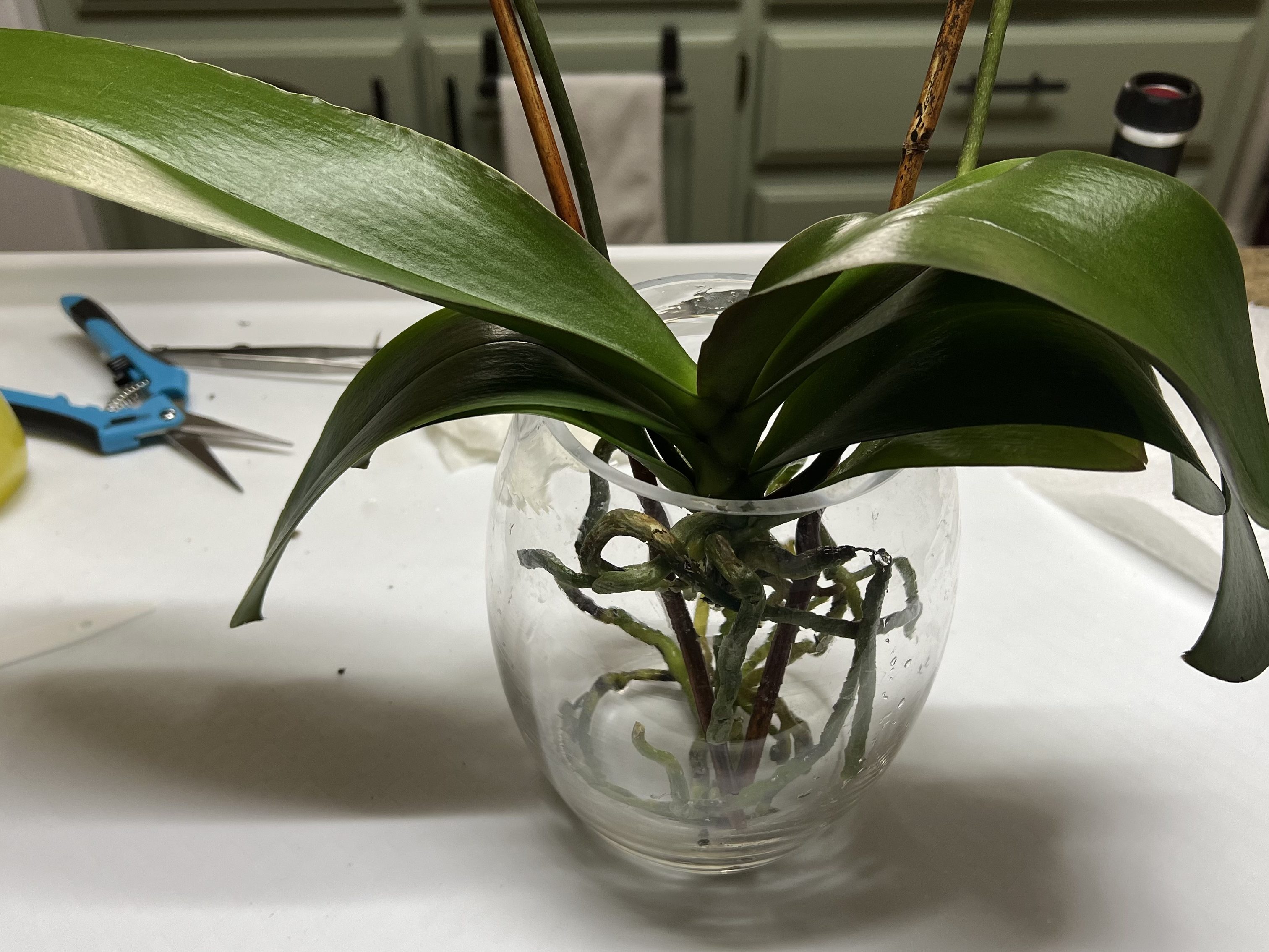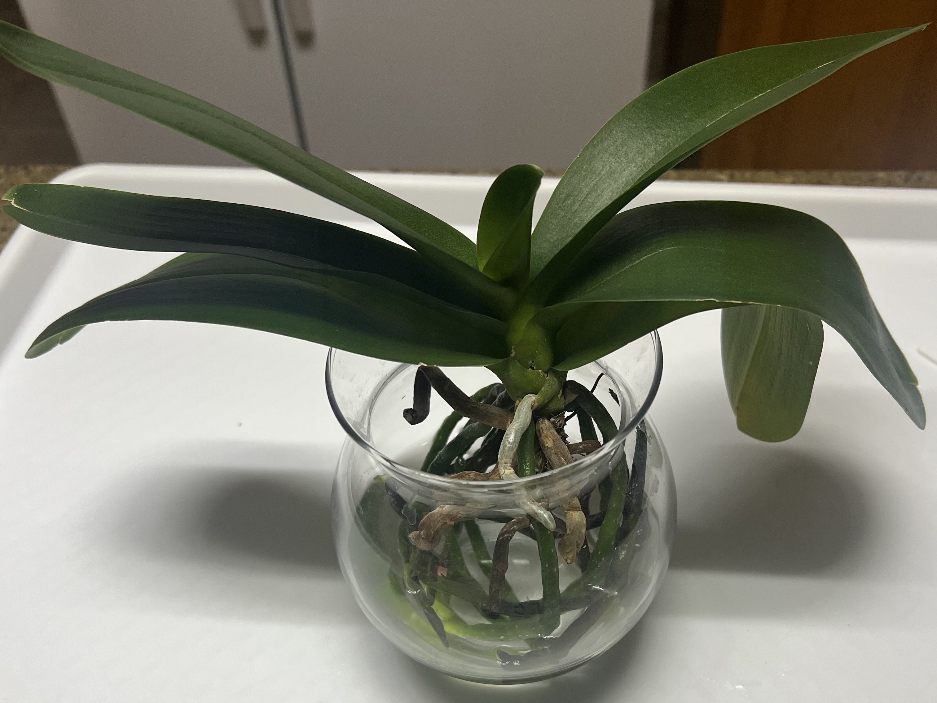 Eleanor’s original blooms are still hanging on with new buds and a secondary spike growing. Her roots are doing well although I’d like to see more new