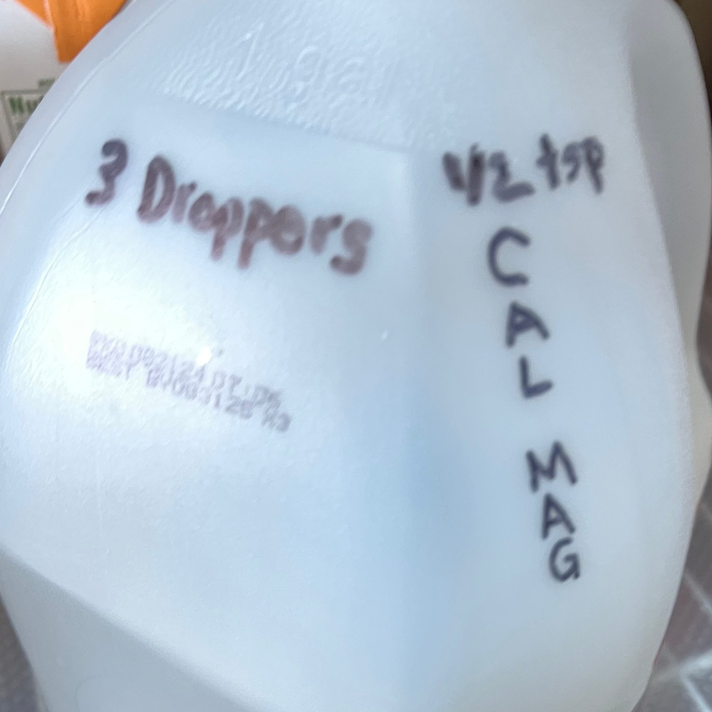 - ½ teaspoon (3 droppers) Cal-Mag to 1 gallon water