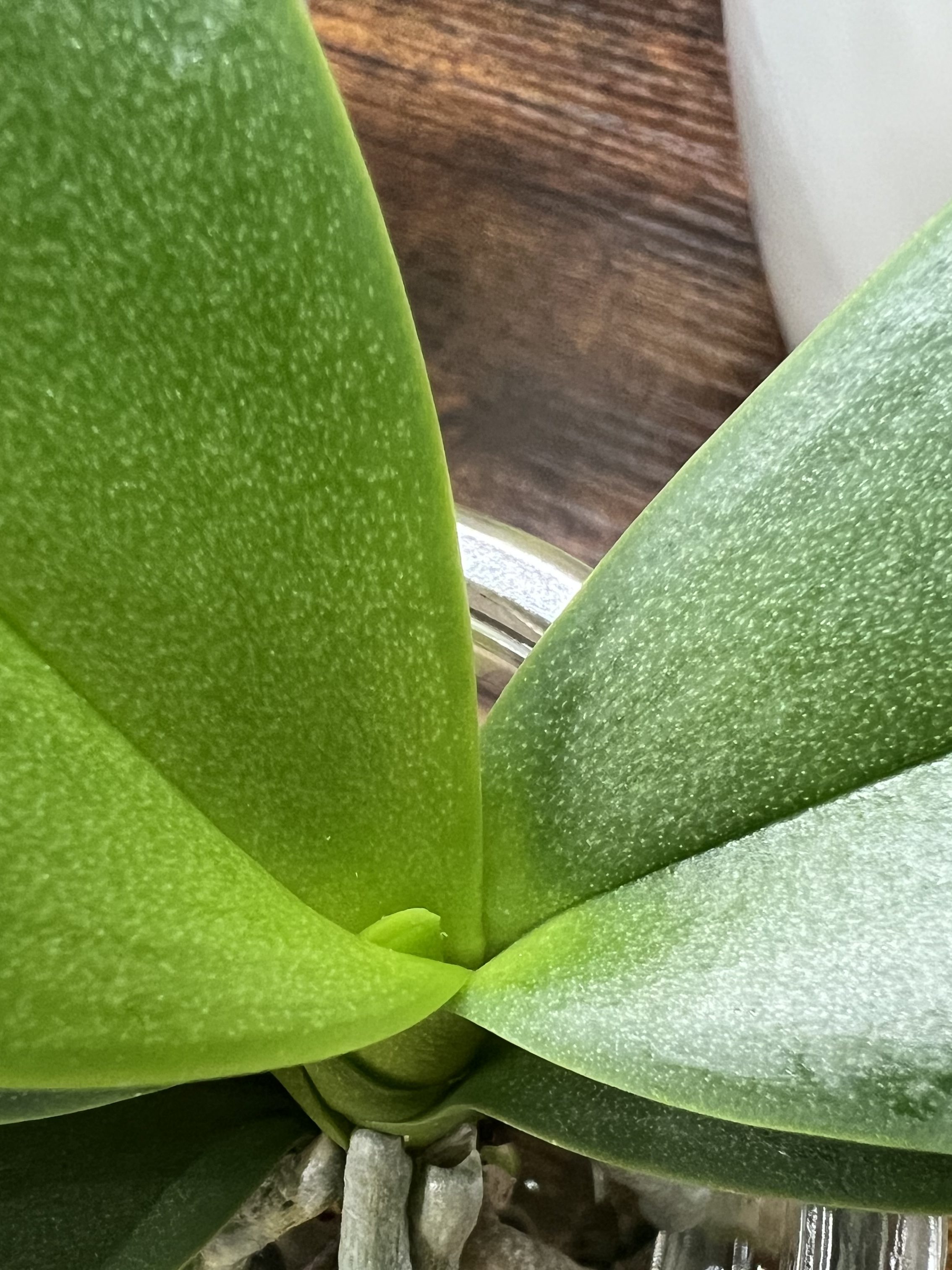With orchids, jade and aloe, new leaves appear between the top two leaves on the plant. No matter how these vibrant new leaves emerge, it truly adds to the joy I experience in growing plants.