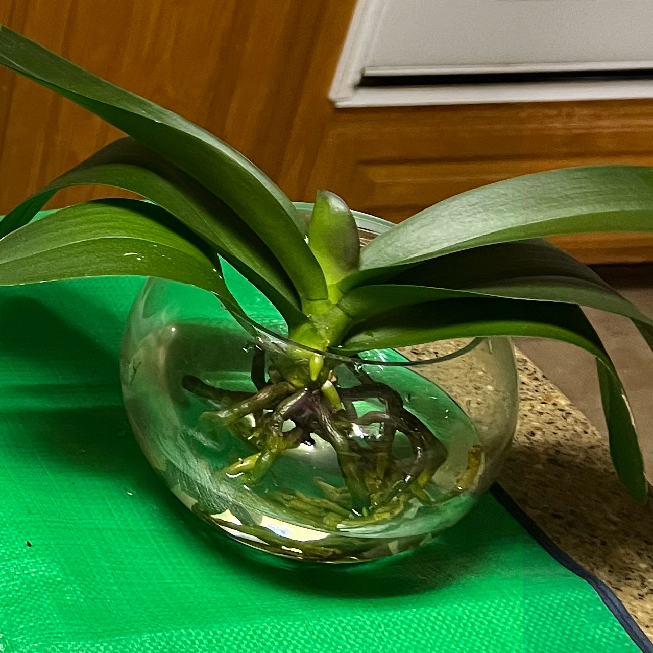 Two years ago, while traveling down a YouTube rabbit hole of orchid care videos, I stumbled upon someone who grew orchids with bare roots… in glasses and jars of water. I was fascinated. The question was whether or not I was willing to risk one of my orchids to try it… I mean, I had watched her video and she showed step-by-step how to do it, plus there was everything I had learned watching hours and hours of videos. At the time, I had two orchids, Poche and Chadebise. Of those two, Poche was the smaller of the two so I chose him to be my sacrificial lamb.