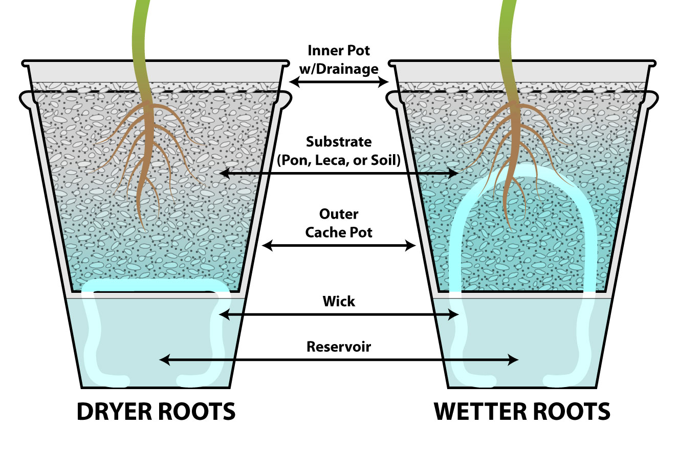 - Keeping the wick low in the inner pot will keep your substrate dryer. Do this if you have a plant that is prone to root rot.